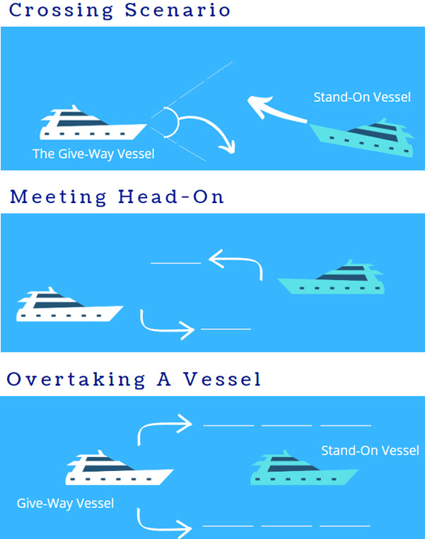 The U.S. Coast Guard has put together a complete list of explanations as to exactly what each boater should do in each scenario. The main takeaway from the document is to be safe, sensible, and use precaution for all vessels around you.